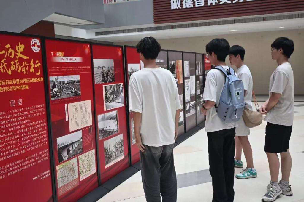 当泛黄的档案纸张缓缓展开,当黑白的历史影像静静播放,那段镌刻在浙东大地上的抗战记忆,正等待着我们重新翻阅。今年是中国人民抗日战争暨世界反法西斯战争胜利80周年,9月30日-10月17日,由宁波市档案馆、奉化区档案馆联合主办,浙药大党委宣传部与图书馆共同承办的“铭记历史 砥砺前行——纪念中国人民抗日战争暨世界反法西斯战争胜利80周年档案主题展”走进浙药大。
