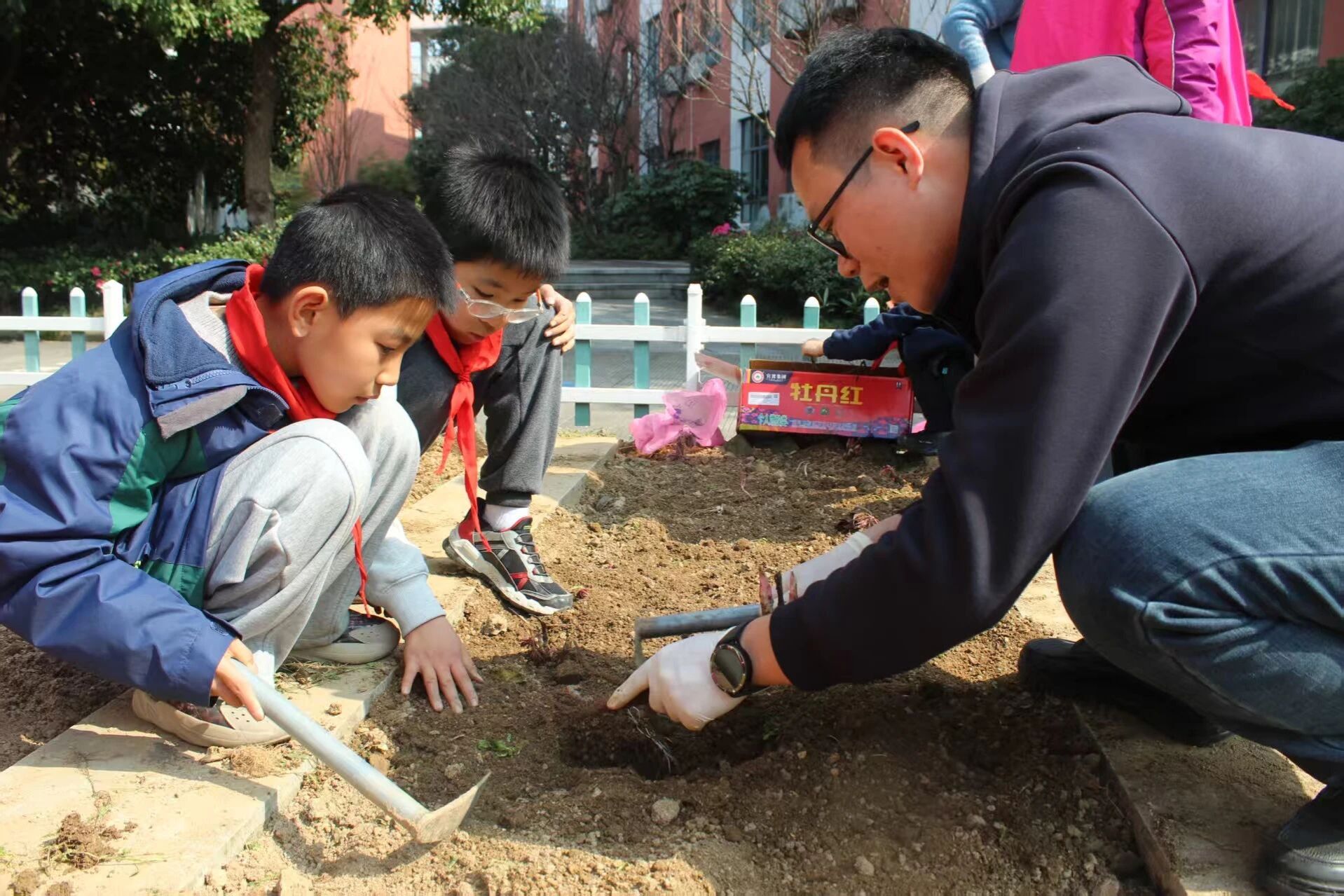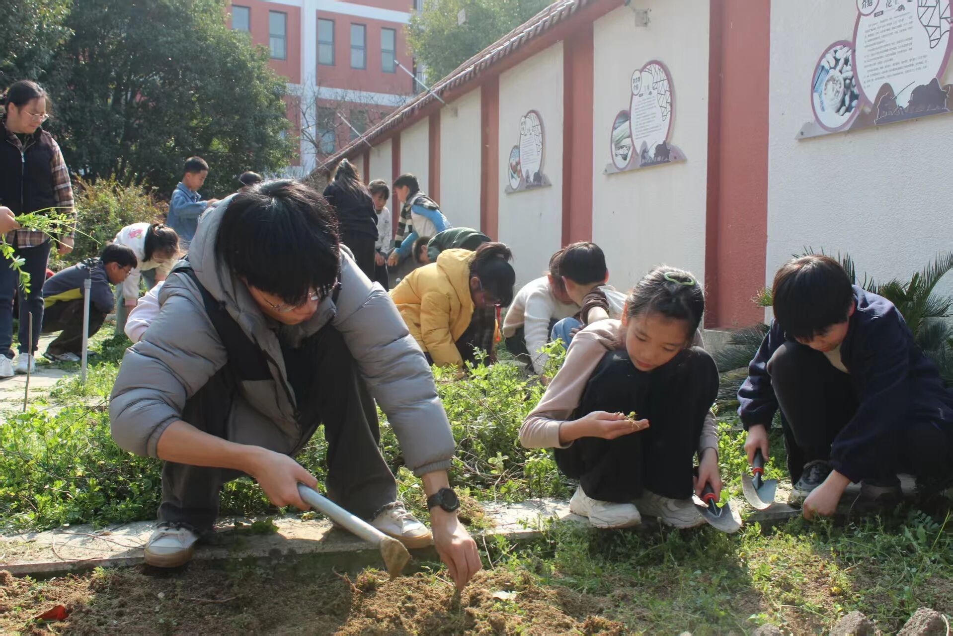 阳春三月,春意盎然。午后的海曙石碶冯家小学百草园内格外热闹,我校中药学院的师生志愿者与冯家小学的师生们齐聚于此,共同栽下象征希望、美好与未来的中药植物。此次活动由我校中药学院党委组织开展,是植树节专项志愿服务的重要内容,也是学院深入推动“大中小学思政一体化”建设的具体实践。